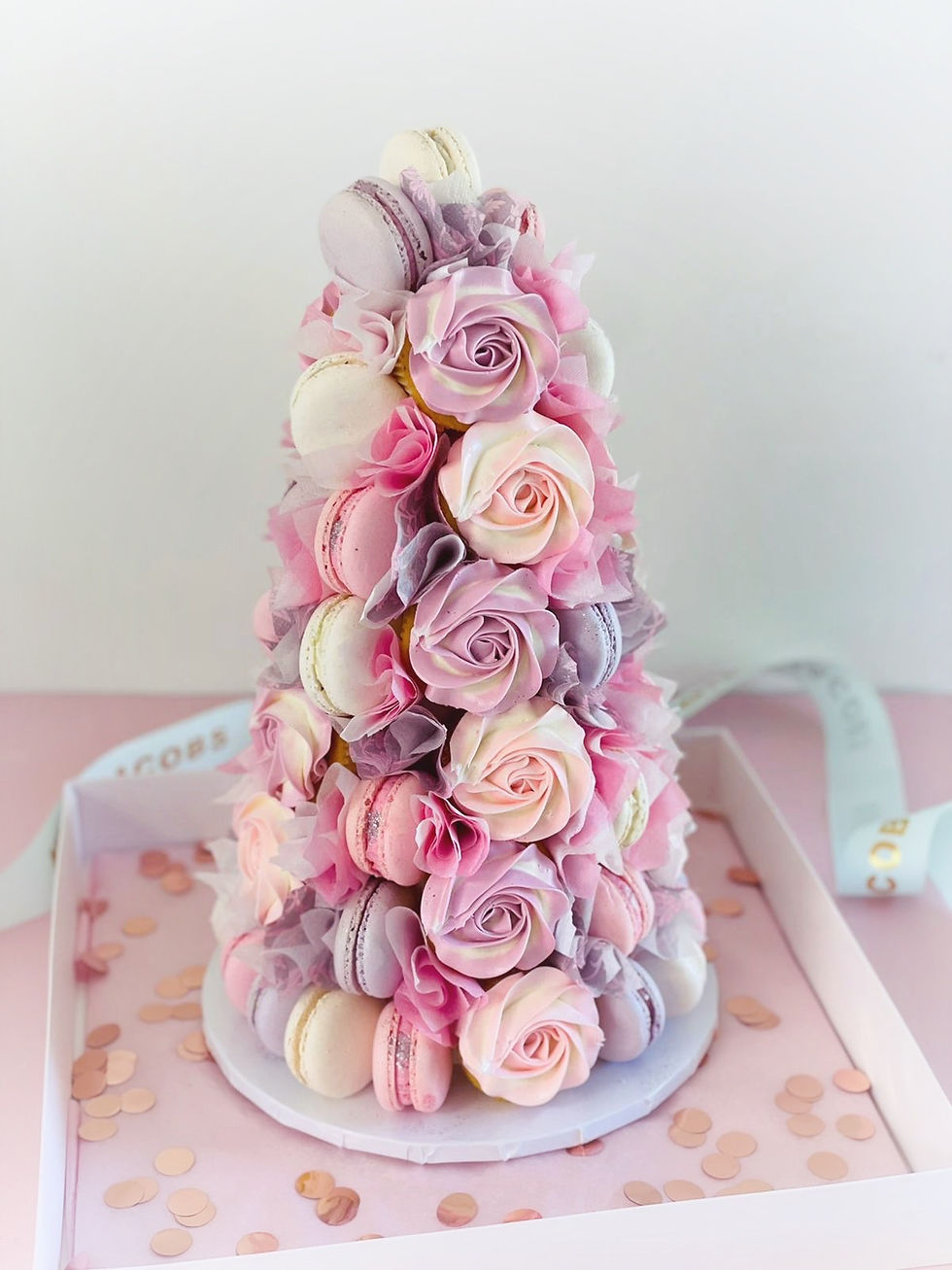 קונוס מקרונים וקאפקייקס,סגול ורוד